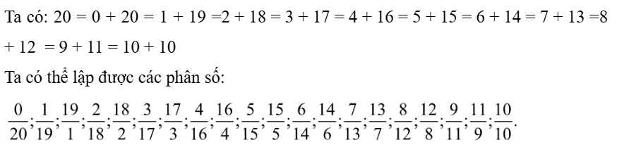 Lập được bao nhiêu phân số có tổng tử số và mẫu số bằng 20. Đó là những phân số nào?