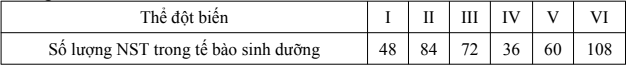 Cho biết số lượng nhiễm sắc thể trong tất cả các cặp ở mỗi tế bào của mỗi thể đột biến là bằng nhau. Trong các thể đột biến trên, số thể đột biến đa bội lẻ là