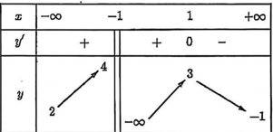 Cho hàm số $y=f(x)$ xác định trên $\mathbb{R}\backslash\{-1\}$, liên tục trên mỗi khoảng xác định và có bảng biến thiên như hình sau: