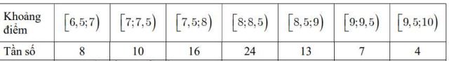 Thống kê điểm trung bình môn Toán của một số học sinh lớp 12 được mẫu số liệu sau: