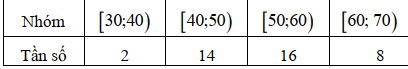 Bảng sau đây biểu diễn mẫu số liệu ghép nhóm về cân nặng (đơn vị: kilôgam) của 40 học sinh lớp 10A trong một trường trung học phổ thông. Khoảng biến thiên của mẫu số liệu ghép nhóm trên bằng