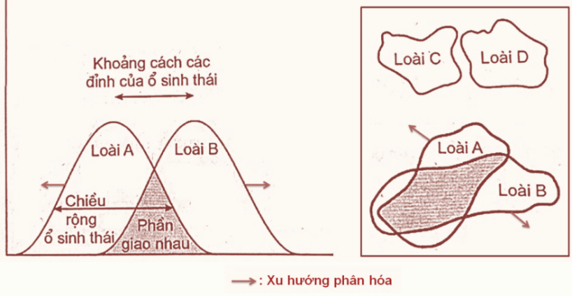 Sơ đồ dưới đây mô tả về ổ sinh thái về dinh dưỡng của 4 loài chim ăn hạt về kích thước hạt. Kết luận nào dưới đây không đúng?