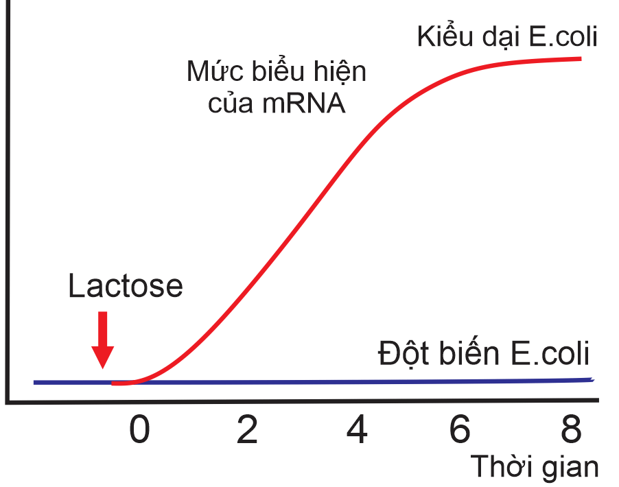 c) Chủng vi khuẩn đột biến có thể sản phẩm của gene điều hòa lacI mất khả năng liên kết với lactoso, hay đột biến lacIS.