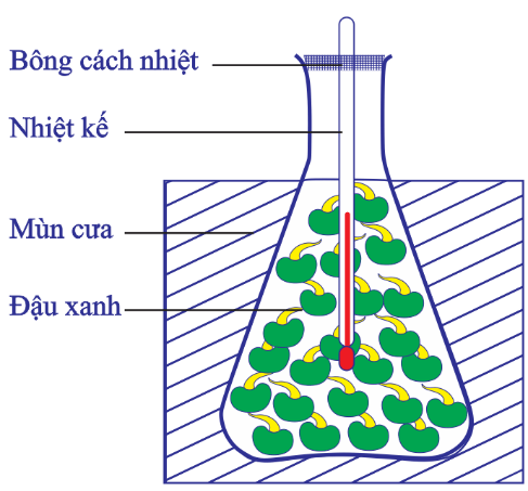 d) Nếu đem hạt nẩy mầm luộc chín để nguội đưa vào bình thì nhiệtn độ sẽ không tăng hơn bên ngoài, chứng tỏ hô hấp sinh nhiệt.