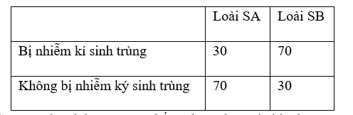 b) Các cá thể của loài SB khi bị nhiễm ký sinh trùng có khả năng sinh sản tăng gấp hơn 2 lần so với các cá thể không bị nhiễm ký sinh trùng.