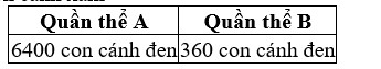 Ở một loài chim, màu cánh được xác định bởi một gene gồm hai allele: allele B quy định cánh đen trội hoàn toàn so với allele b quy định cánh xám. Quần thể chim ở thành phố A ở trạng thái cân bằng di truyền có 10000 con, trong đó có 6400 con cánh đen. Một nhóm nhỏ của quần thể A bay sang một khu cách li bên cạnh có điều kiện sống tương tự và sau vài thế hệ phát triển thành một quần thể B ở trạng thái cân bằng, trong đó có 1000 con, trong đó có 640 con cánh xám