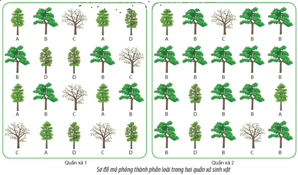 Cho hình minh họa về hai quần xã 1 và 2: Nhận định sau đây về hình này là Sai?