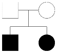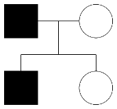 Trong một gia đình, bố mẹ bình thường sinh ra 2 con: một con trai bị bệnh, một con gái bình thường. Bệnh di truyền có thể thuộc kiểu gene lặn liên kết giới tính. Phả hệ nào sau đây là chính xác?