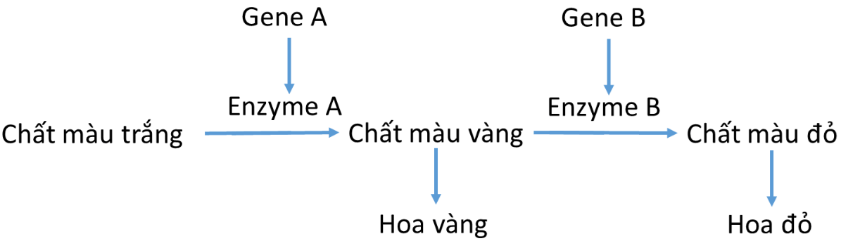 Ở một loài thực vật, tính trạng màu hoa do hai cặp gene A, a và B, b cùng quy định theo sơ đồ sinh hoá như sau: