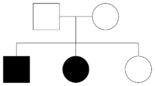 Một người chồng bệnh A kết hôn với người vợ bình thường. Họ sinh được ba người con. Tất cả con trai đều bình thường. Biết rằng gene bệnh là gene lặn trên nhiễm sắc thể thường. Phả hệ nào sau đây là đúng?