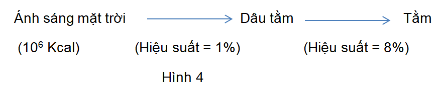Trong công tác chon giống đã thu được giống Dâu tằm có hiệu suất quang hợp tăng 2% và cải tạo giống Tằm sau khi nuôi “bằng lượng Dâu tằm trên” đạt 3 * 105 Kcal. Hiệu suất của Tằm tăng lên bao nhiêu so với ban đầu ? (Viết kết quả bằng số thập phân)