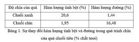 Theo bài đọc, sự biến đổi hàm lượng tinh bột và đường trong nông sản phụ thuộc vào những yếu tố nào sau đây? Độ chín của nông sản.