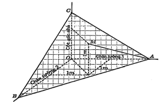 Ông An đang xây một ngôi nhà, trong quá trình xây phải đổ bê tông cho một mái vát để lợp ngói. Ông tính toán việc ghép cốt pha đi qua điểm B trên một chân tường và điểm C trên cột góc nhà, đồng thời mặt ghép cốt pha phải đi qua điểm A trên chân tường còn lại cách điểm ở góc giao hai chân tưởng một khoảng 5 m, ông cũng tận dụng một chiếc cột có sẵn để chống mặt ghép (xem hình). Biết rằng hai bức tường được xây vuông góc với nhau, mỗi bức tường đều vuông góc với sàn mái nhà, cột có chiều cao 1 m và cách hai bức tường với cùng khoảng cách 1 m (đỉnh cột là điểm M). Diện tích nhỏ nhất của khung ghép cốt pha ABC là bao nhiêu mét vuông (làm tròn kết quả đến hàng phần trăm)?