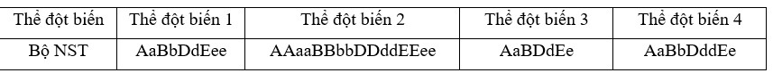Một loài thực vật lưỡng bội có 4 cặp NST được kí hiệu lần lượt là Aa, Bb, Dd, Ee. Giả sử có 4 thể đột biến với số lượng NST như sau: