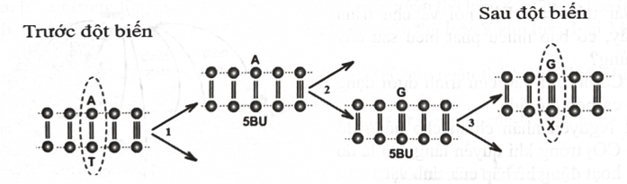 Sơ đồ sau đây mô tả quá trình thay đổi trình tự nucleotide tại 1 điểm trên đoạn của gene. Đây là dạng đột biến