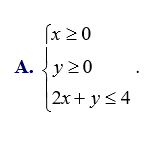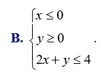 Miền không bị gạch chéo trong hình vẽ (kể cả bờ) là miền nghiệm của hệ bất phương trình nào dưới đây?