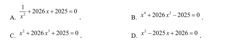 Phương trình nào dưới đây là phương trình bậc hai một ẩn?
