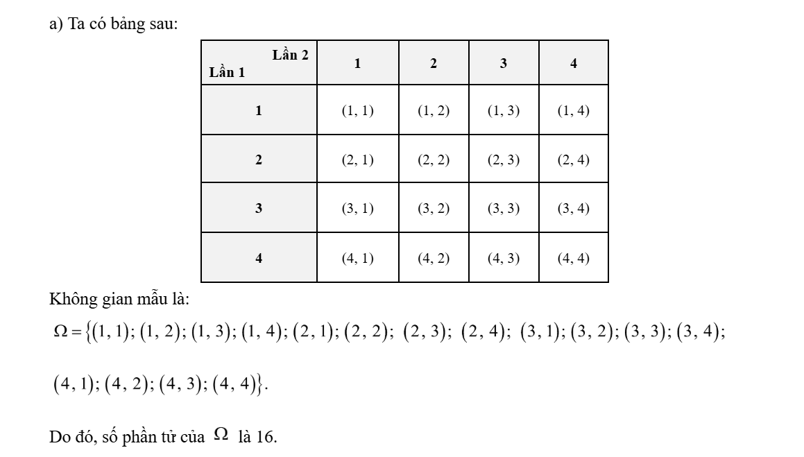 Có hai túi I và II, mỗi túi chứa 4 tấm thẻ được đánh số 1; 2; 3; 4. Rút ngẫu nhiên từ mỗi túi ra một tấm thẻ và nhân hai số ghi trên tấm thẻ với nhau. a) Tính số phần tử của không gian mẫu