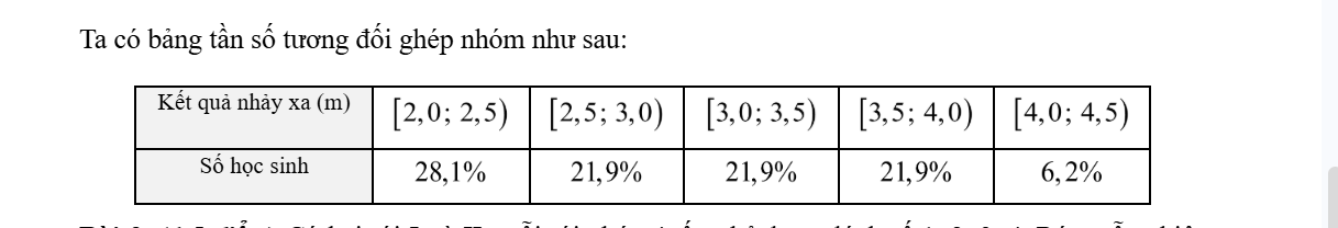 Kết quả nhảy xa của một lớp (đơn vị mét) được cho trong bảng sau: