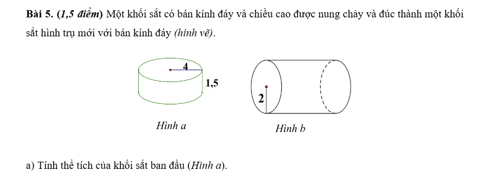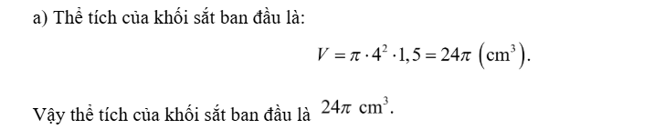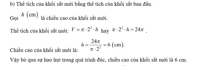 b) Tính chiều cao của khối sắt mới, bỏ qua sự hao hụt trong quá trình đúc (Hình b).