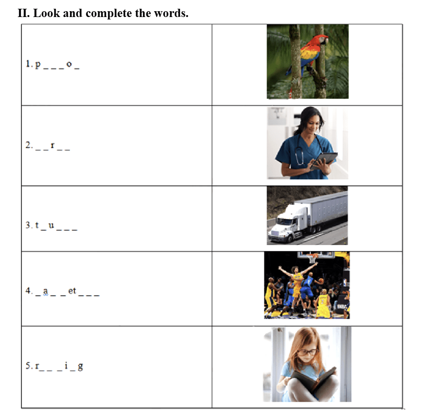 Read ad complete. three dog have birds and has Hi. My name’s Ben. I (1) _______ many toys. I have two cars and (2) _______ trains. I have four ships (3) _______ five buses. I like my toys. I have a friend. His name is Andy. He (4) ___________ some pets. He has one (5) _________ and two cats. He has three rabbits and four (6) ________. They are cute and nice.