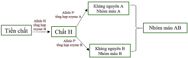 Ở người, sự hình thành nhóm máu ABO do hoạt động phối hợp của 2 gen H và I, được thể hiện trong sơ đồ hình bên dưới. Allele lặn h và allele lặn IO đều không tổng hợp được enzyme tương ứng. Gene H và gene I nằm trên hai nhiễm sắc thể khác nhau. Khi trên bề mặt hồng cầu có cả kháng nguyên A và kháng nguyên B sẽ biểu hiện nhóm máu AB, khi không có cả hai loại kháng nguyên thì biểu hiện nhóm máu O. Cho biết các gen phân li độc lập. Một người có nhóm máu O có tối đa bao nhiêu loại kiểu gene về hai gene nói trên?