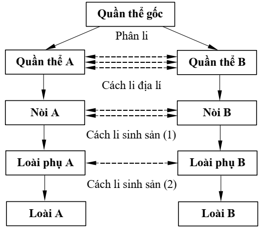 a) Cách li sinh sản (1) là cách li sau hợp tử, cách li sinh sản (2) là cách li trước hợp tử.