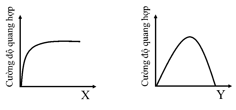 Đồ thị dưới đây thể hiện mối quan hệ giữa hai nhân tố X, Y tới cường độ quang hợp ở thực vật.