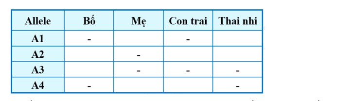 Đột biến ở gene CFTR gây bệnh xơ nang. Một nhà tư vấn di truyền nghiên cứu một gia đình, trong đó cả bố và mẹ đều là thể dị hợp về một đột biến CFTR. Họ sinh con thứ nhất bị bệnh này và đang muốn kiểm tra thai để sinh con thứ hai xem đó là thai bị bệnh hay không. Các mẫu DNA từ các thành viên trong gia đình và thai nhi được xét nghiệm PCR và điện di trên gel phân tích chỉ thị vi vệ tinh của gene CFTR thu được như hình bên.