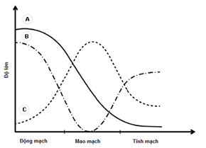 a) Đường cong B biểu diễn sự biến động của vận tốc máu.