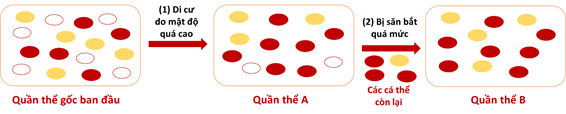 a) Các cá thể trong quần thể A có thể sinh sản vô tính theo hình thức trinh sinh, các cá thể trong quần thể B có hình thức sinh sản hữu tính.