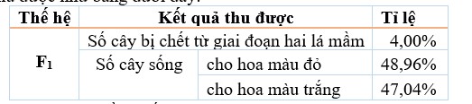 Ở một quần thể thực vật ngẫu phối, allele đột biến a làm cây bị chết từ giai đoạn còn hai lá mầm; allele trội A quy định kiểu hình bình thường. Ở một locut gene khác có allele B quy định hoa màu đỏ trội hoàn toàn so với allele b quy định hoa màu trắng. Hai cặp gene nằm trên hai cặp NST thường phân ly độc lập với nhau. Một kết quả khảo sát thu được như bảng dưới đây: