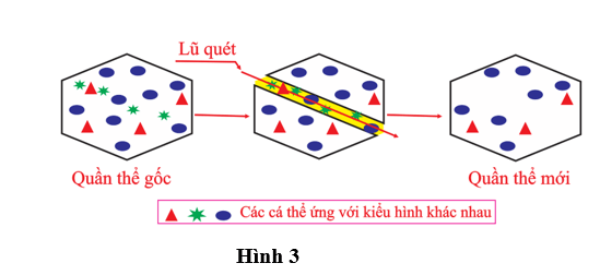 Theo học thuyết tiến hóa tổng hợp hiện đại, Hình 3 mô tả tác động của một nhân tố tiến hóa nào?
