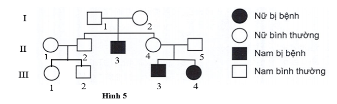 Sơ đồ phả hệ Hình 5 mô tả một bệnh di truyền ở người do một trong hai allele của một gene quy định. Biết rằng không có đột biến mới phát sinh ở tất cả các cá thể trong phả hệ.