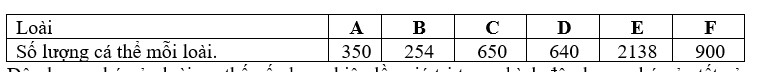 Một quần xã nhân tạo chỉ có 6 loài sinh vật. Khi thống kê số lượng cá thể của từng loài trong quần xã người ta thu được bảng sau: