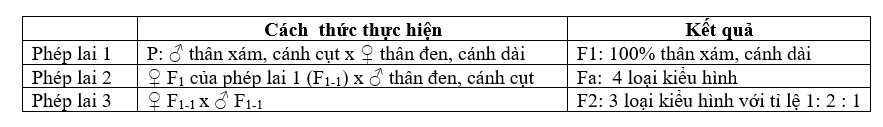 Dựa trên cơ sở các thí nghiệm về di truyền của Morgan, giả định một nhóm học sinh đã thực hiện các phép lai trên ruồi giấm và thu được kết quả như sau: