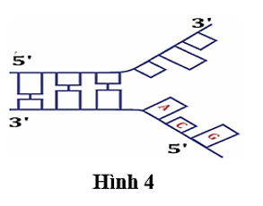 Sơ đồ Hình 4 biểu diễn quá trình nhân đôi DNA, mạch mới liên tục sẽ có trình tự nucleotide là (tính theo chiều tháo xoắn)