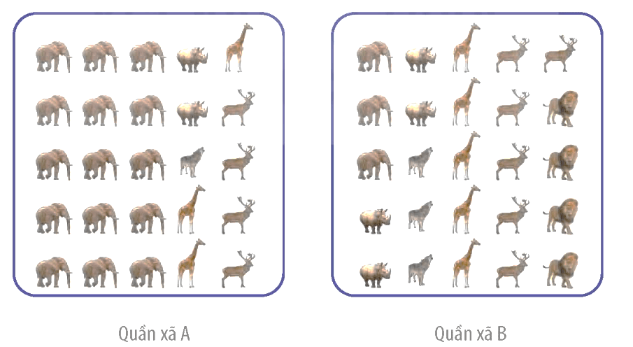 Cho hình minh họa về hai quần xã A và B: Độ đa dạng của quần xã giả định A và B Nhận định sau đây về hình này là Sai?