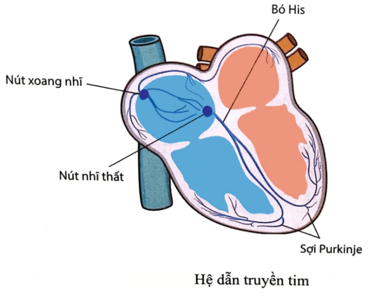 Dựa trên hình mô tả hệ dẫn truyền tim sau đây: Nhận định sau đây về hình này là Sai?