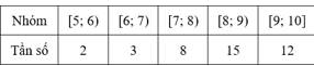 Lớp 12A có 40 học sinh, trong đó có 8 em tham gia Câu lạc bộ Toán học. Điểm thi học kỳ 1 môn Toán của cả lớp được thống kê trong bảng sau: