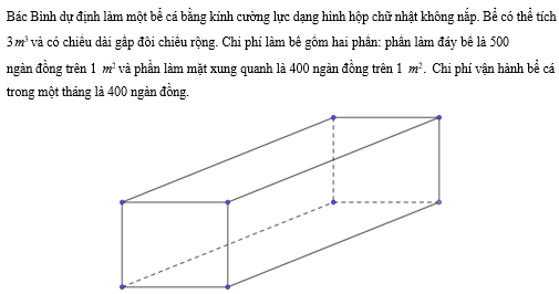 Một doanh nghiệp sản xuất đồ gỗ nội thất cần mỗi ngày 5 khối gỗ để làm các sản phẩm nội thất. Chi phí một lần vận chuyển gỗ từ cơ sở cung cấp gỗ đến nơi sản xuất của doanh nghiệp là 8 triệu đồng, chi phí lưu kho tại doanh nghiệp của 1 khối gỗ là 200 ngàn đồng trên 1 ngày. Mỗi lần vận chuyển, gỗ sẽ được đưa đến đầu ngày làm việc và lượng gỗ được vận chuyển vừa đủ cho doanh nghiệp sử dụng từ ngày hôm đó cho đến lần vận chuyển tiếp theo. Hỏi doanh nghiệp cần vận chuyển gỗ mấy ngày một lần để chi phí trung bình trong một ngày là nhỏ nhất?