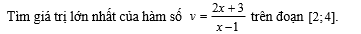 Cho hàm số $f(x) = \frac{ax + b}{x + c}$ có giá trị lớn nhất trên đoạn $[3; 4]$ bằng 7 và có đồ thị $y = f'(x)$ như hình vẽ.