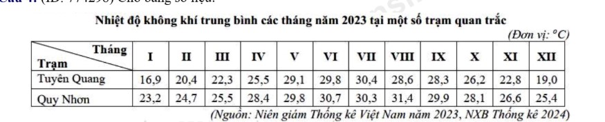 Căn cứ vào bảng số liệu trên, hãy cho biết chênh lệch về biên độ nhiệt trung bình năm giữa trạm quan trắc có biên độ nhiệt độ trung bình cao với trạm quan trắc có biên độ nhiệt độ trung bình năm thấp là bao nhiêu °C (làm tròn kết quả đến một chữ số thập phân).