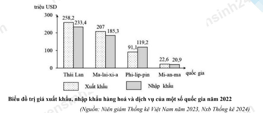 Thái Lan, Ma-lai-xi-a và Phi-lip-pin đều là những nước xuất siêu.