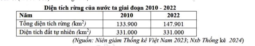 Căn cứ vào bảng số liệu trên, hãy cho biết độ che phủ rừng của nước ta năm 2022 tăng lên bao nhiêu % so với năm 2010 (làm tròn kết quả đến một chữ số thập phân).