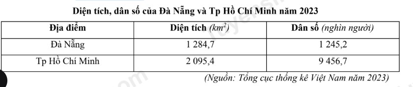 Căn cứ vào bảng số liệu trên, hãy cho biết năm 2023, mật độ dân số của TP Hồ Chí Minh gấp mấy lần Đà Nẵng? (làm tròn kết quả đến một chữ số thập phân).