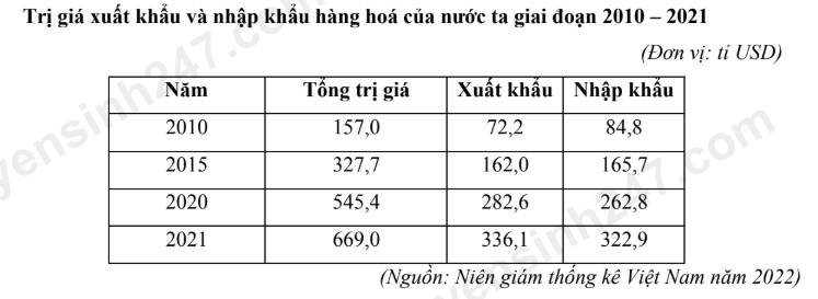 Cho bảng số liệu: