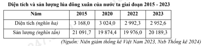 Giai đoạn 2015 - 2023, diện tích lúa đông xuân nước ta giảm.