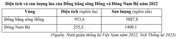Căn cứ vào bảng số liệu trên, hãy cho biết năng suất lúa của Đồng bằng sông Hồng cao hơn Đông Nam Bộ bao nhiêu tạ/ha (làm tròn kết quả đến một chữ số thập phân) .
